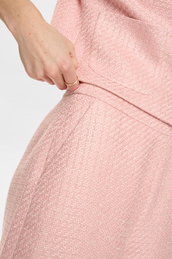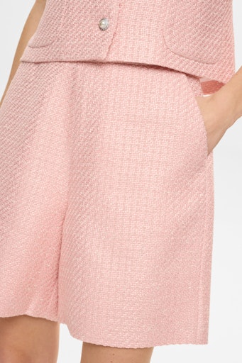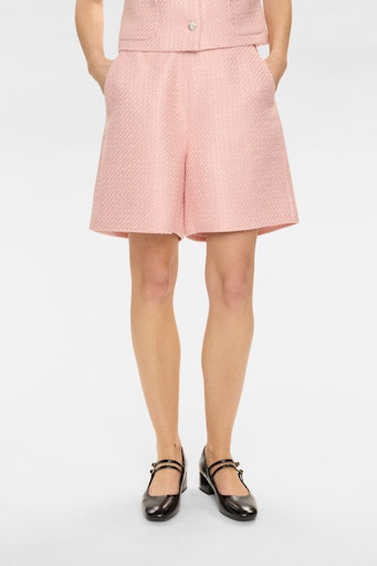 Fine og feminine shorts i en smuk, struktureret kvalitet og et elegant design. Den lyserøde nuance giver et friskt og let udtryk, som gør shortsene nemme at style både op og ned – brug dem med en skjorte og sandaler til sommerens fester eller med en enkel T-shirt til hverdagsbrug.