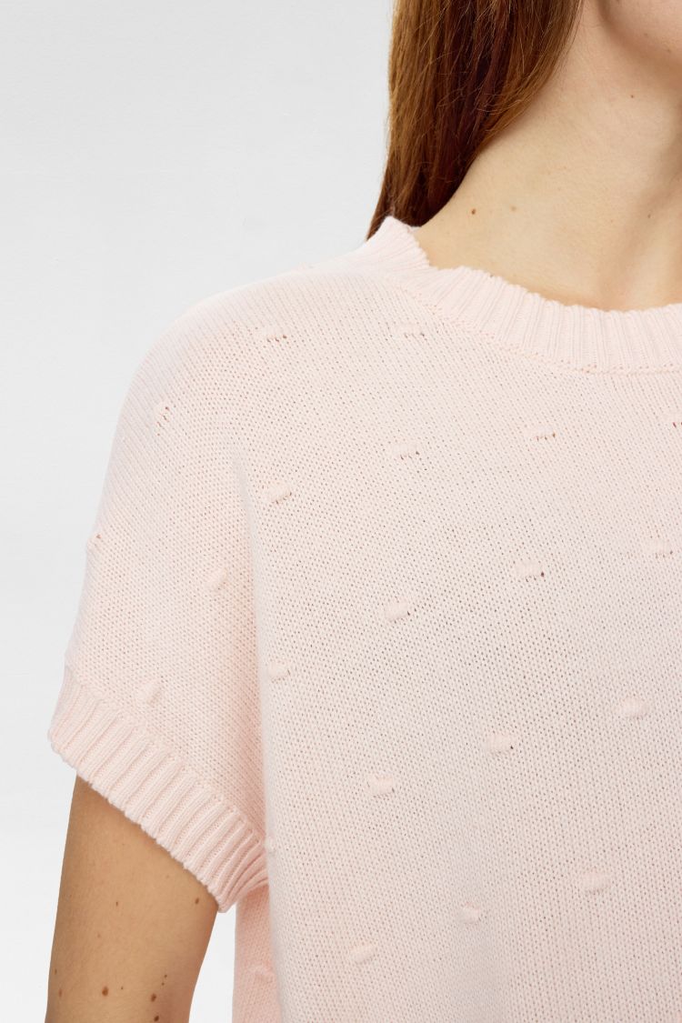 Strikken har en loose pasform med drop-down skuldre, som giver et ubesværet og moderne look. Den runde hals og ribkanter ved hals, ærmer og bund skaber en fin balance mellem det afslappede og det velafsluttede.