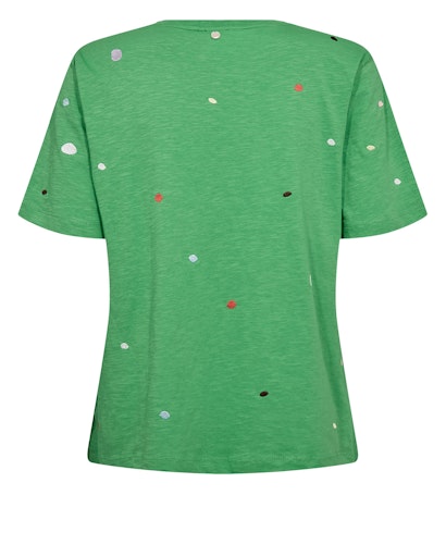 Klassisk T‑shirt i økologisk bomuld med fine, broderede prikker i forskellige farver, som giver et legende og charmerende udtryk. En velkendt og meget populær T‑shirt, som vi sælger mange af år efter år.