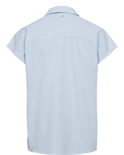 Stribet skjorte uden ærmer i lyseblå og hvide striber med fine, dekorative broderier på fronten i forskellige små motiver. NUASHLEY EMBROIDERY SHIRT er let, sommerlig og fuld af de detaljer, som gør den helt sin egen.