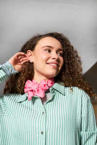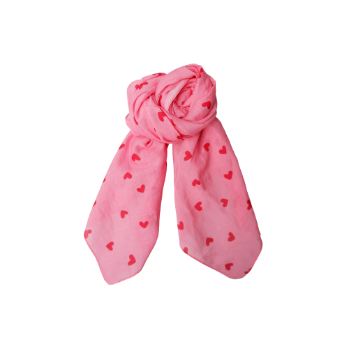 Elegant lille tørklæde i en lækker blanding af bomuld og silke. De smukke farver og det fine all‑over hjerteprint giver et feminint og legende udtryk. Brug tørklædet i halsen, om håndleddet eller bind det på tasken for at give dit outfit et ekstra pift.