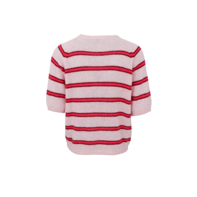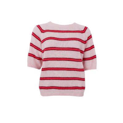 Blusen er designet med klædelige raglanærmer og fine striber, der giver et levende, men stadig roligt udtryk. Den har rund hals, og ribkanter ved hals, ærmer og bund skaber en pæn og harmonisk afslutning.