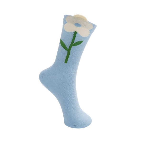 Fine strømper i en smuk lyseblå nuance med en dekorativ blomst placeret på ydersiden – en lille detalje, der gør hele forskellen. De er strikket i en blød bomuldskvalitet med elastan, som giver god fleksibilitet og en behagelig pasform hele dagen.