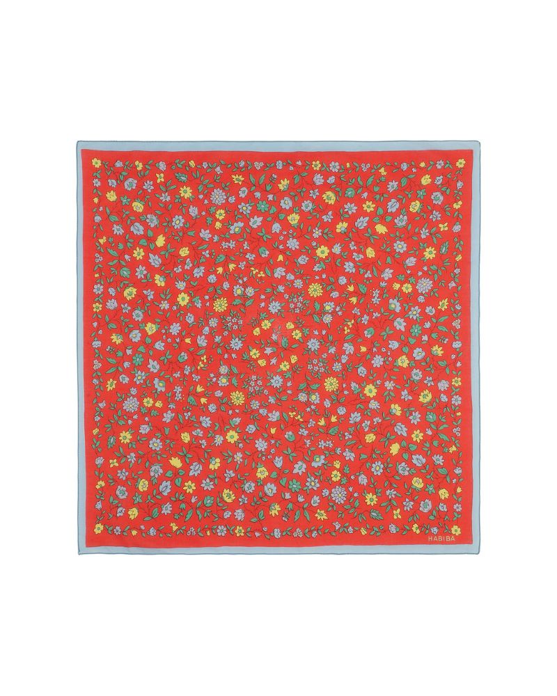 Skøn bandana i blødt, økologisk bomuld med et fint småblomstret mønster. Kvaliteten er let og behagelig mod huden, perfekt at have tæt på – om halsen, i håret eller hvor du ellers har lyst. I det ene hjørne finder du HABIBAs diskrete signatur, som understreger det gennemførte design.