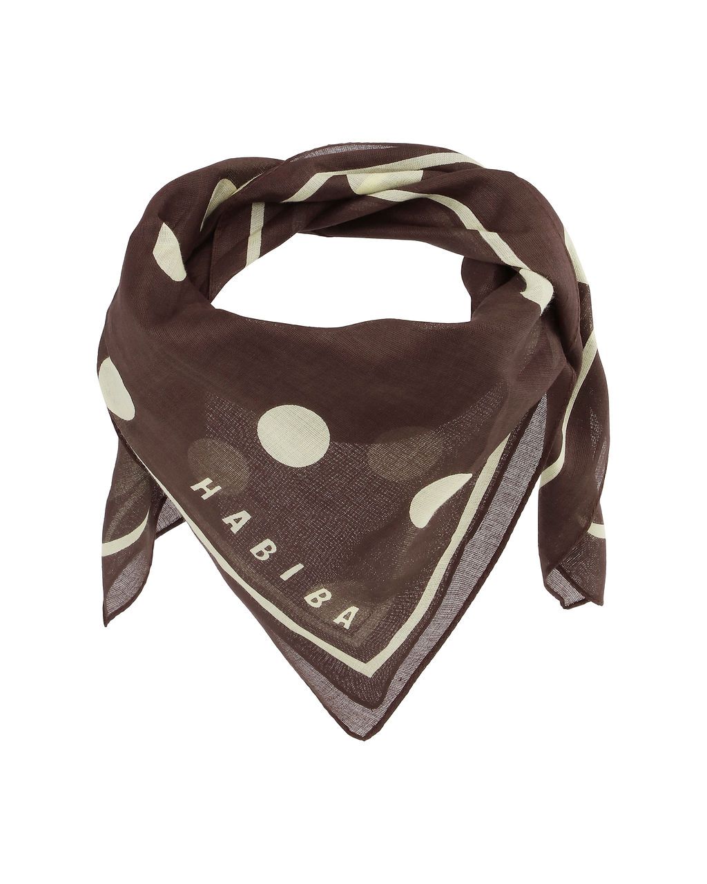 Prikket bandana i blødt, økologisk bomuld i en varm og dyb coffee-nuance. Tørklædet har fine, lyse prikker og en lys kant hele vejen rundt, som giver et let og balanceret udtryk. I det ene hjørne finder du HABIBAs diskrete signatur – en lille detalje, der fuldender designet.
