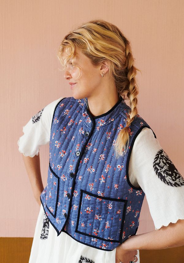 Kollektionerne spænder fra quiltede jakker og toilettasker til vattæpper, patchwork‑plaider, yogapøller og kimonoer – alt skabt med stor kærlighed til tekstiler, mønstre og smukke farver. Materialerne er økologiske, håndværket nænsomt udført, og kvaliteten er altid i fokus.