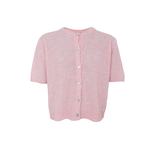 En let og feminin cardigan med korte ærmer i en blød kvalitet med hele 50 % alpakauld. Den føles let og lun på samme tid – perfekt som et ekstra lag, uden at det bliver tungt.
