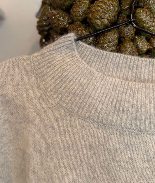 Doanna er en elegant og ubesværet strik fra Six Ames med rund hals og smukke flagermusærmer, der giver silhuetten et blødt og sofistikeret fald. Formen er afslappet, men stadig feminin – en strik, der falder naturligt omkring kroppen og skaber et roligt og harmonisk udtryk. Ribkanterne ved hals og bund samler designet og giver en raffineret afslutning.