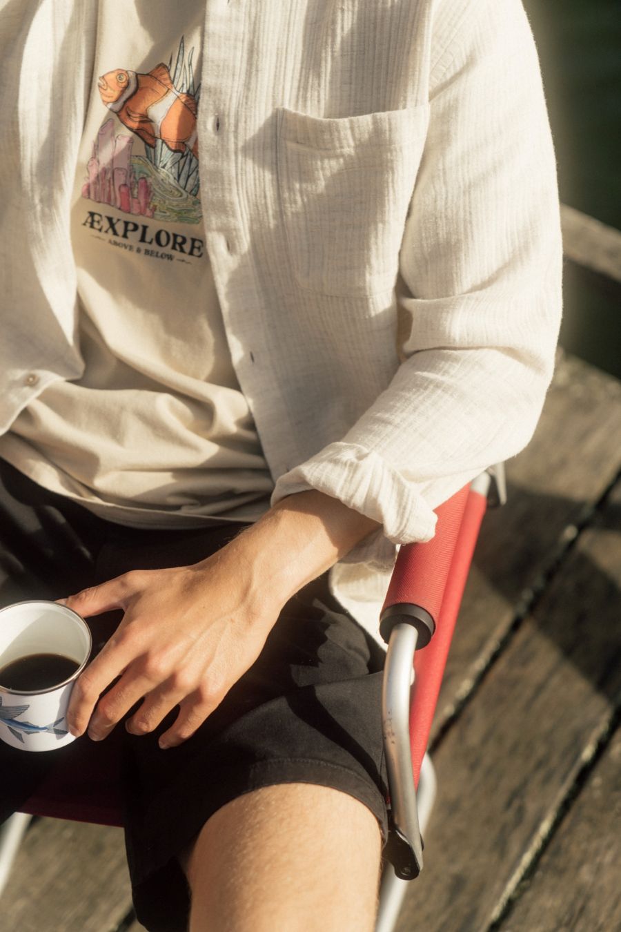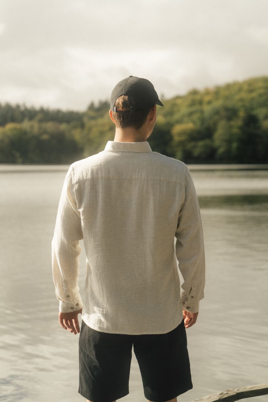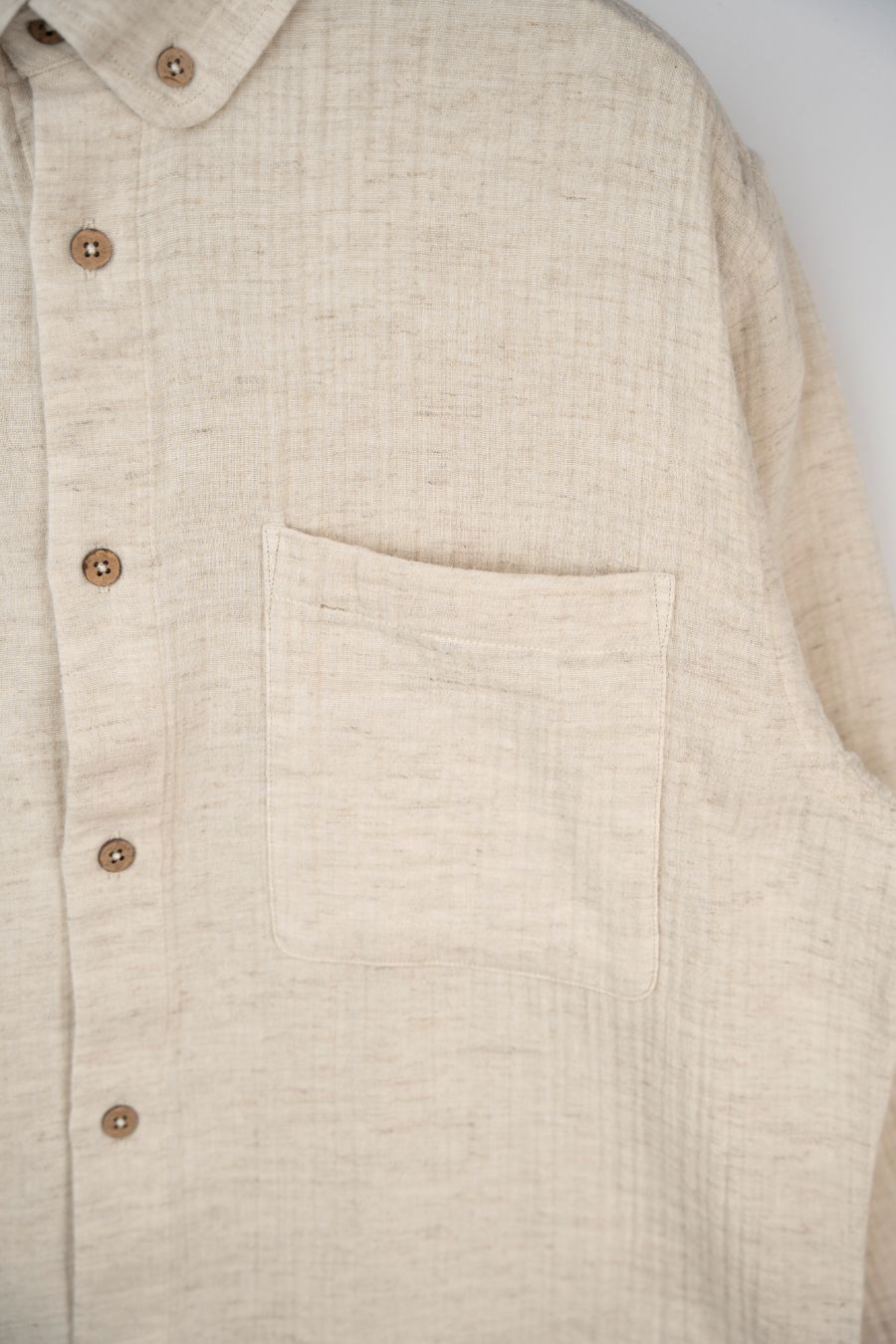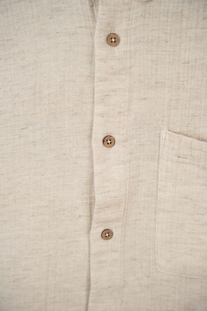 Modellen har en klassisk button‑down krave, en enkelt brystlomme og knapper lavet af kokosnødder, som understreger det naturlige og afslappede udtryk. En alsidig skjorte, der fungerer perfekt både til hverdag og mere afslappede anledninger.
