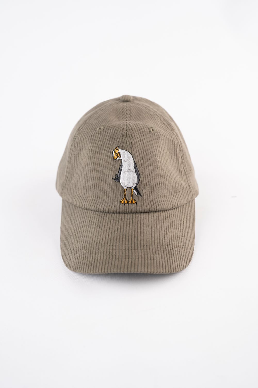 Klassisk cap i blød fløjl med et fint og charmerende broderi af en fræk måge, som giver et legende og personligt udtryk. Cappen har en flot armygrøn farve, der skaber et roligt og naturinspireret look og passer perfekt til både hverdagsbrug og ture ud i det fri.