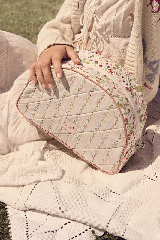 En stor makeuppung til dine vigtigste fornødenheder, når du er på farten. Stoffet er sommerligt og let – perfekt til at give dine småting et strejf af solskin og lethed, uanset hvor dagen fører dig hen. Her er god plads til det hele, hvad enten det er shampoo, bodylotion og endda en mindre makeuppung.