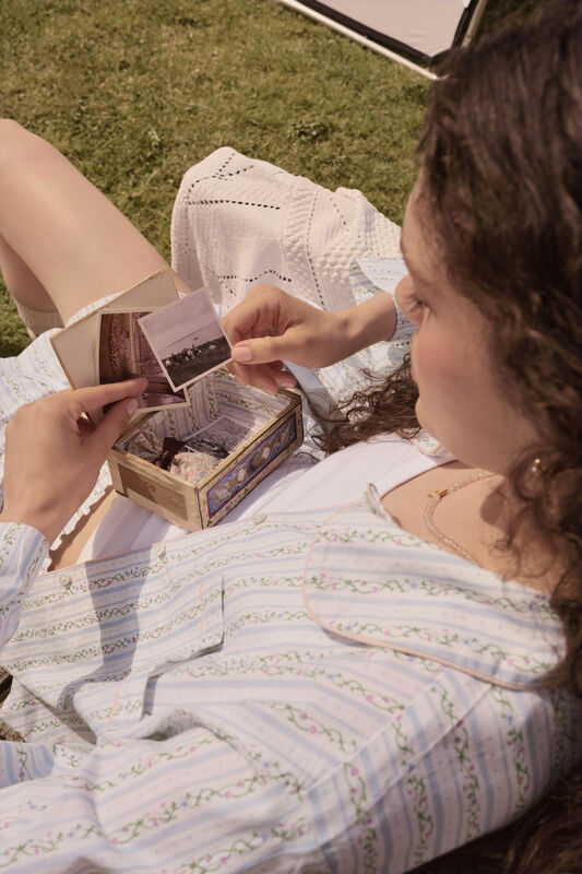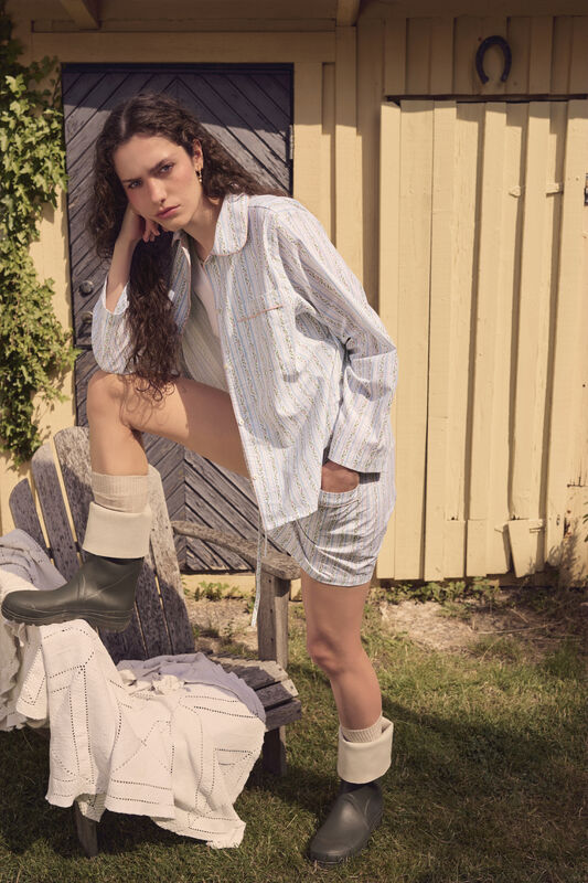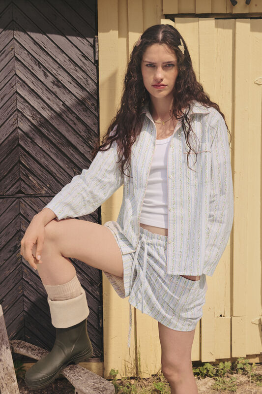 Som en særlig detalje er skjorten pyntet med en sart rosa piping ved lommen, kraven og langs knaplukningen foran. Det stribede look kombineret med fine blomsterranker giver et let, feminint og sommerligt udtryk. Fremstillet i 100 % økologisk bomuld, som føles blød og behagelig mod huden.