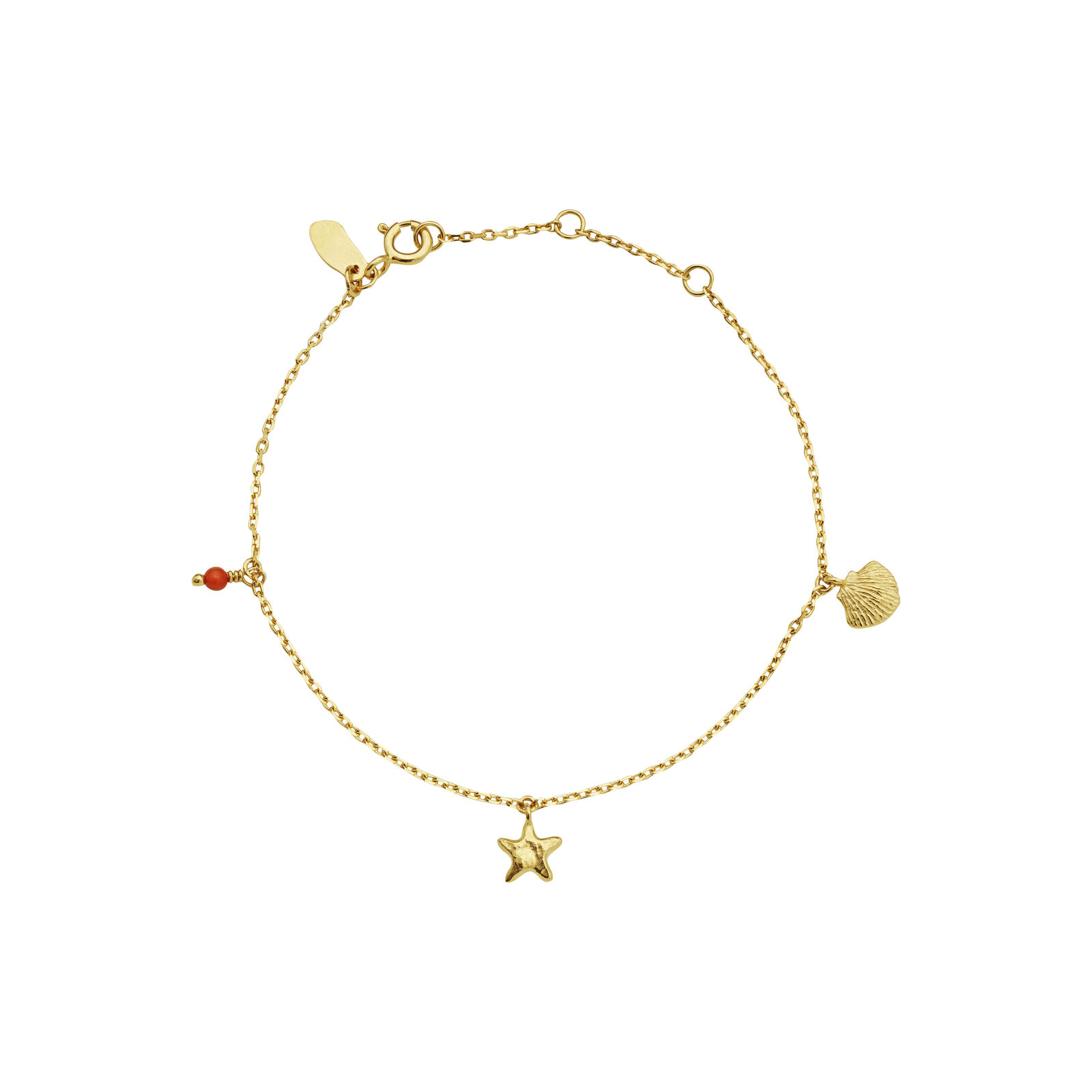 Mød sommeren med selvtillid og glæde med dette fine armbånd, prydet med symboler fra havet og en lille rød koral, der tilfører varme og karakter. Et smykke, der emmer af sol, saltvand og frihed – perfekt til bare håndled og lange sommerdage.