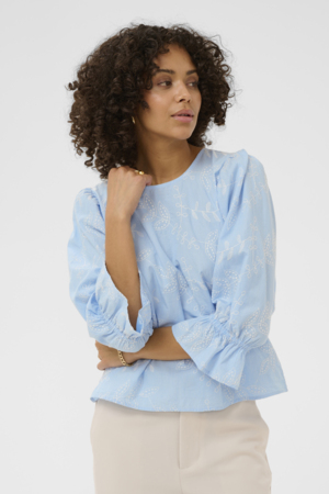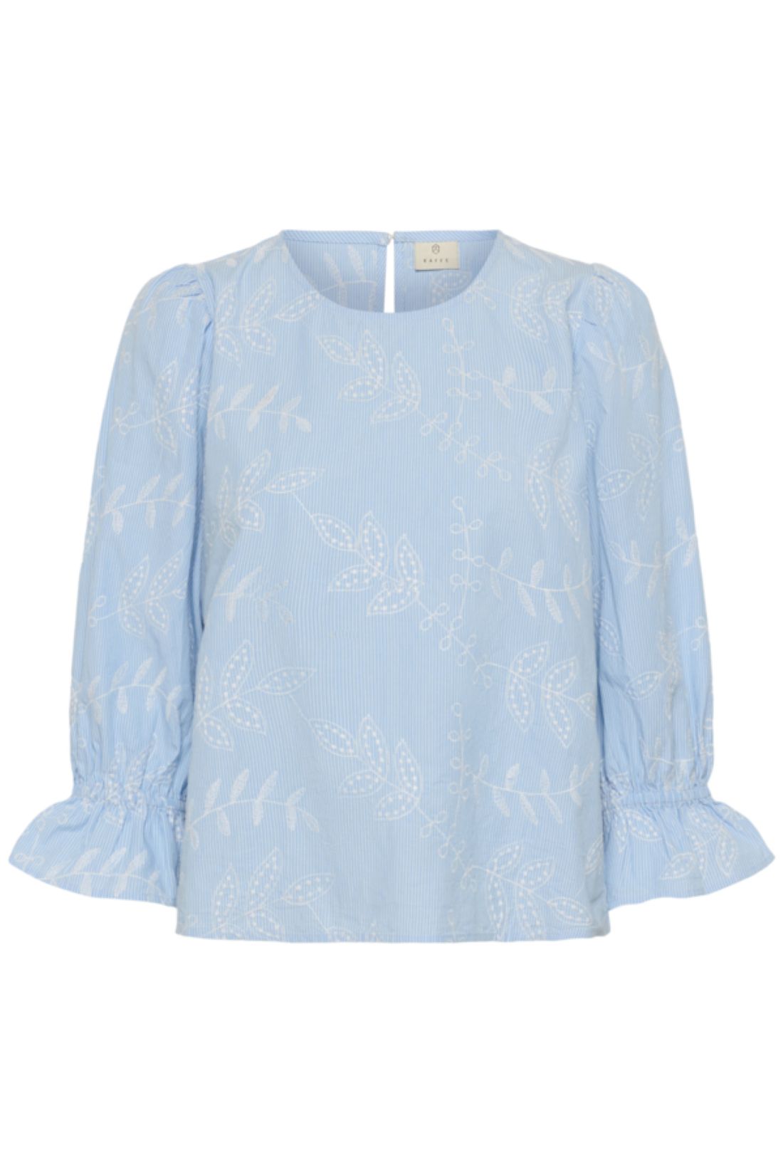 KAFFE - KAmarlee Blouse - White Blue Embroidery Stripe