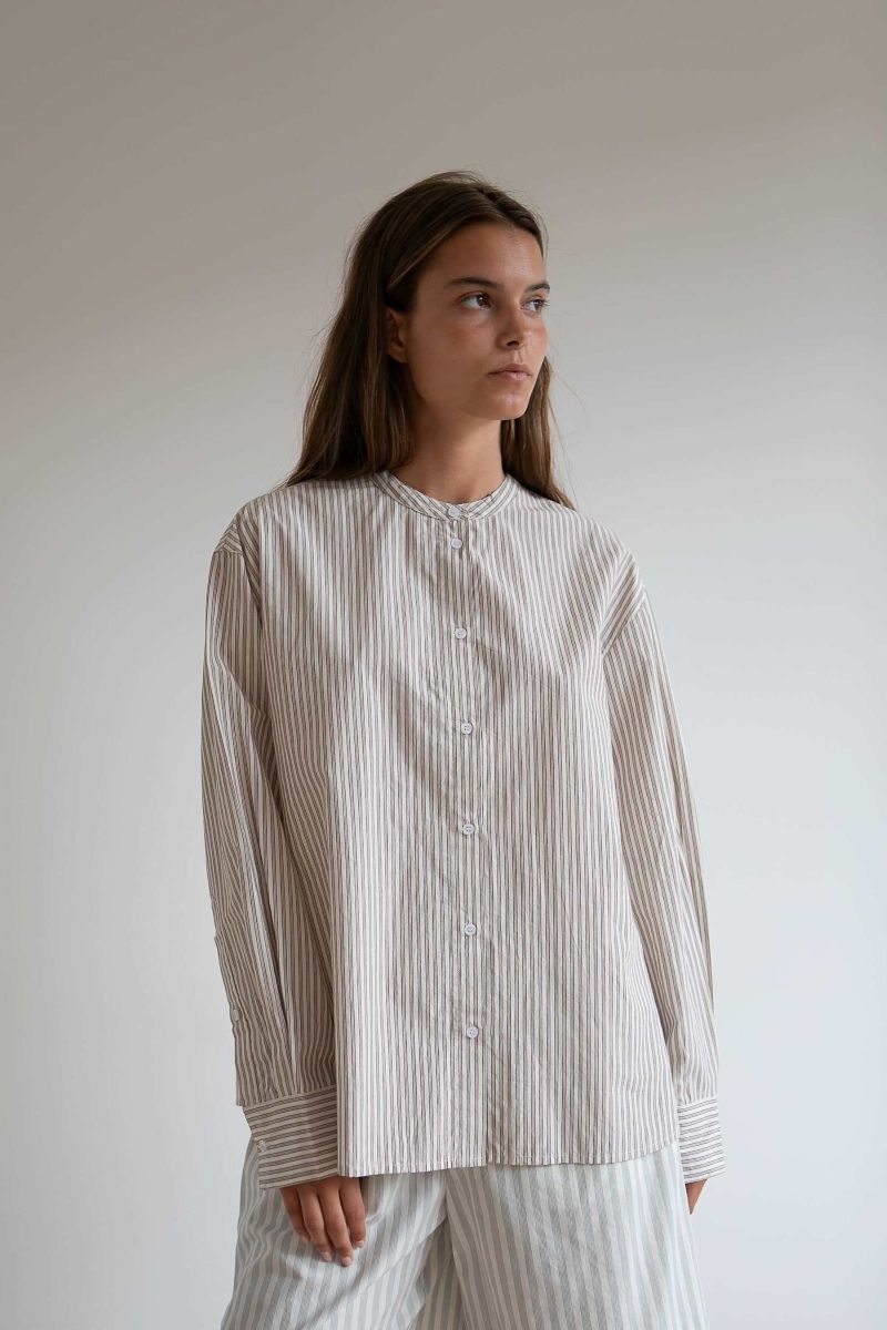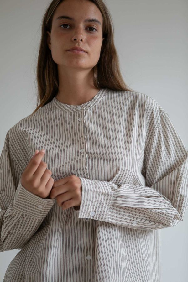 Studio Feder - ISOLDE SHIRT - COTTON - BROWN BEACH STRIPE