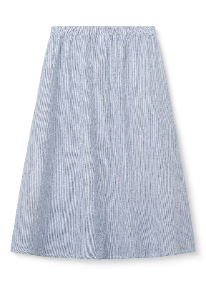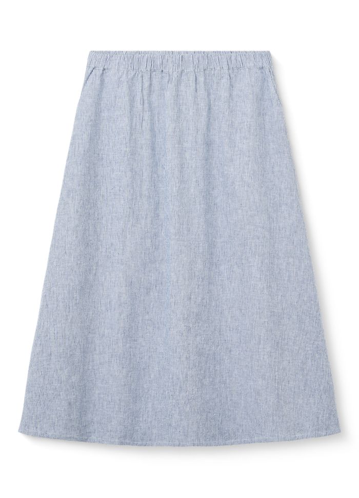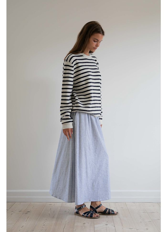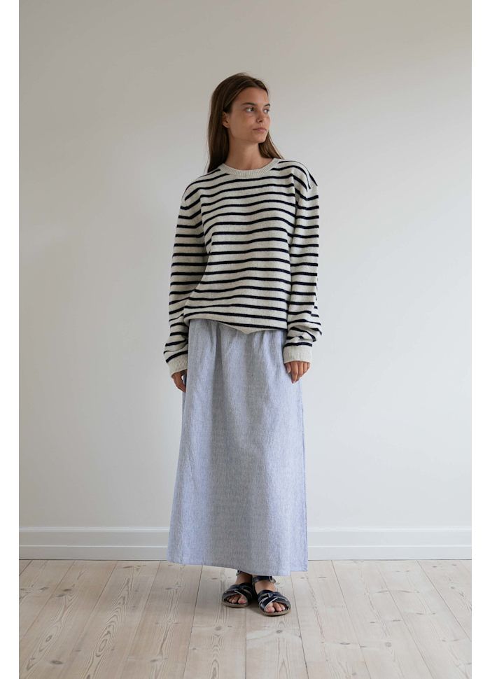 Agnes‑nederdelen fra Studio Feder er fremstillet i en blød og naturlig blanding af hør og bomuld. De smalle, klassiske striber giver et afslappet og stilrent udtryk, som er nemt at bruge sæson efter sæson.