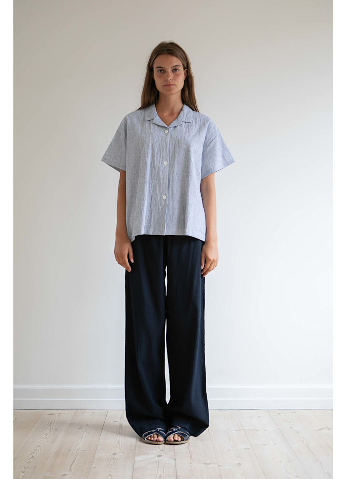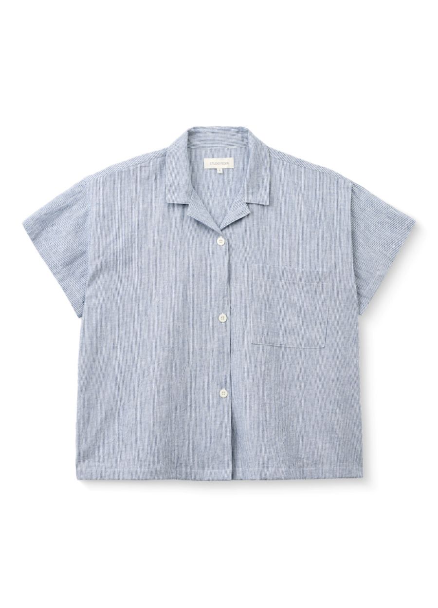 Kortærmet skjorte fra Studio Feder, fremstillet i en blød og naturlig blanding af hør og bomuld. De smalle, klassiske striber giver skjorten et afslappet og cool udtryk med en flot, let tekstur.
