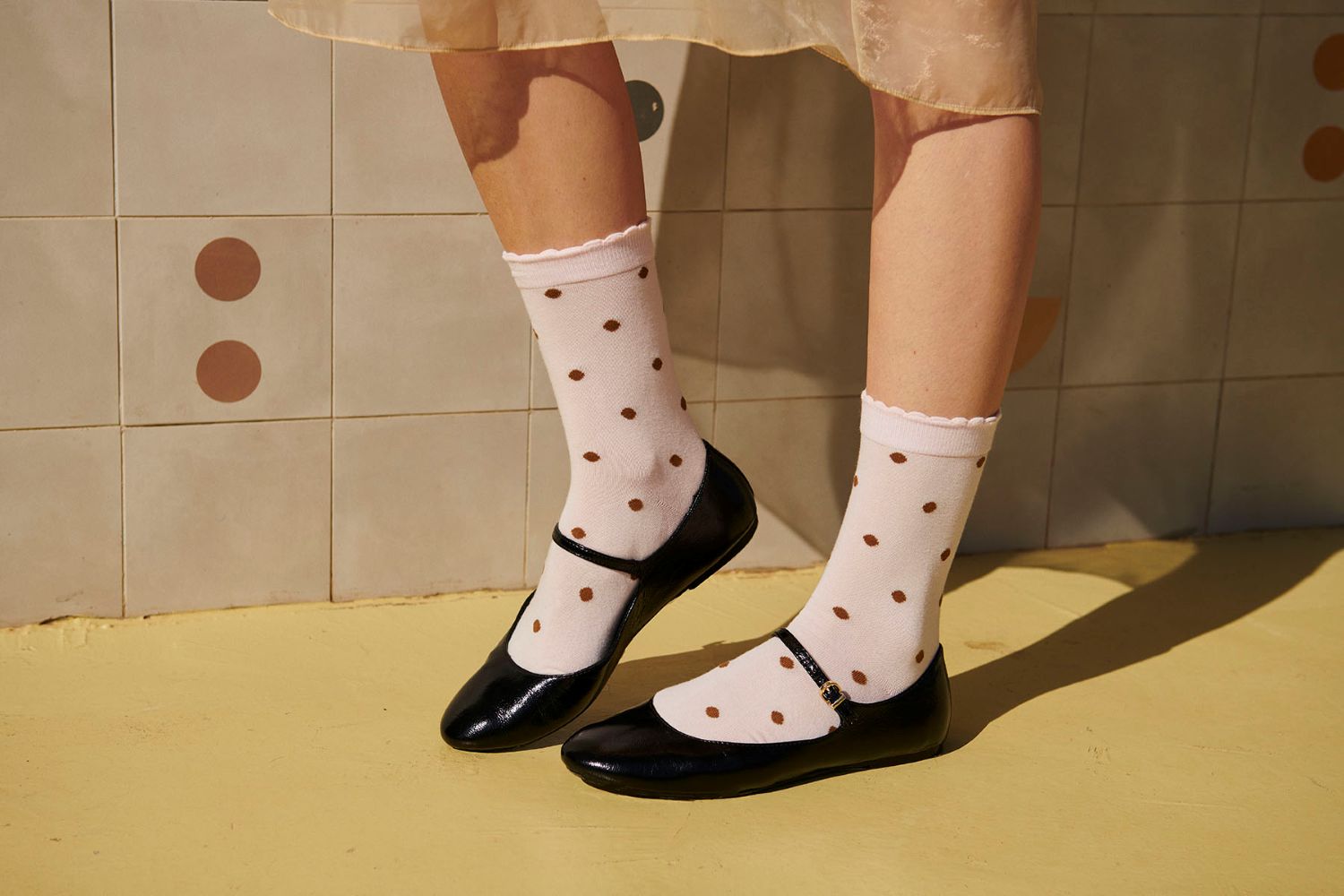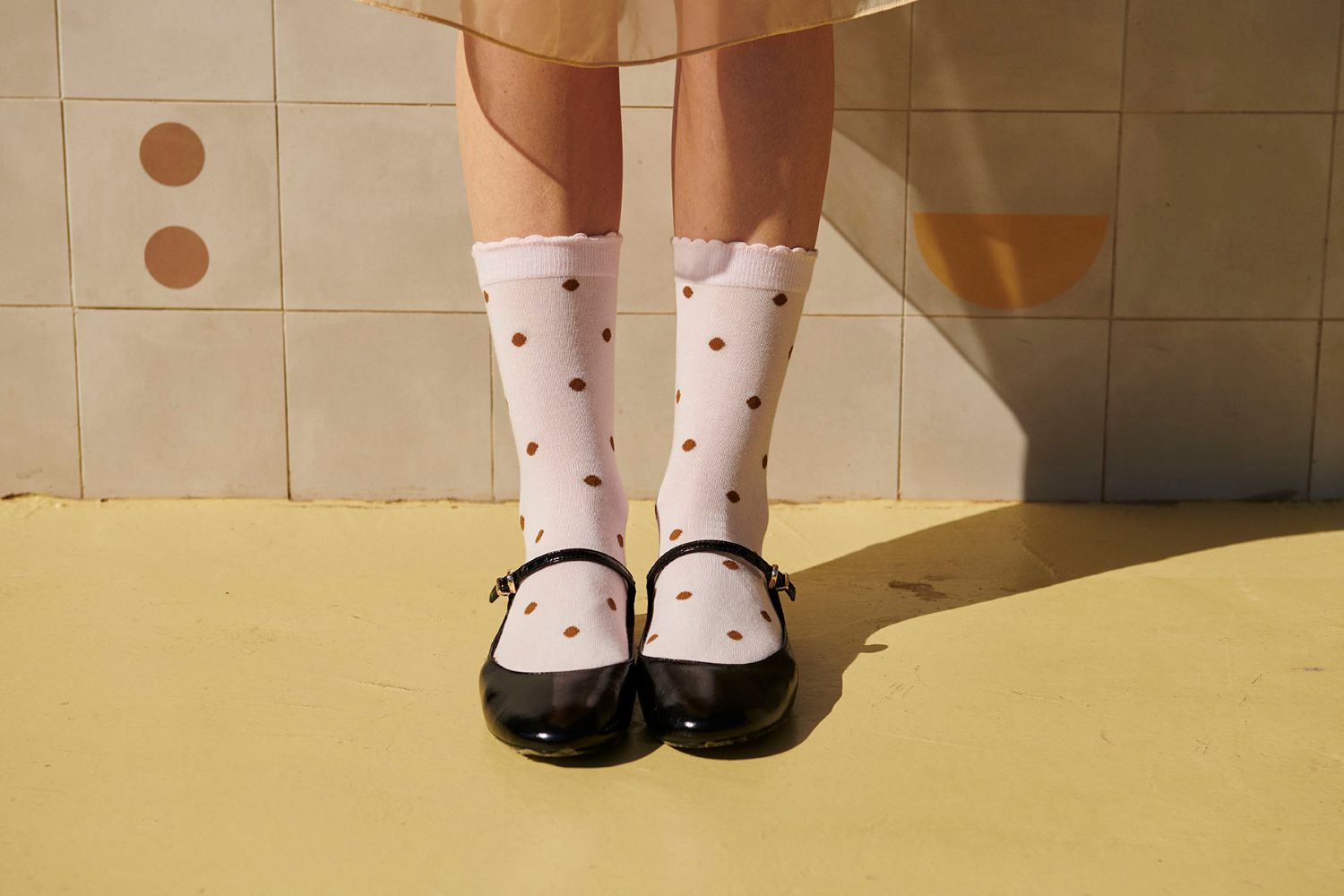 Strømper med fine prikker – en skøn detalje, der giver dit outfit et elegant og legende løft. Strømperne er fremstillet i en blød bomuldsblend, som føles behagelig mod huden og sikrer høj komfort hele dagen. De er designet med forstærket hæl og tå samt en anatomisk korrekt hæl, der giver optimal pasform og støtte.