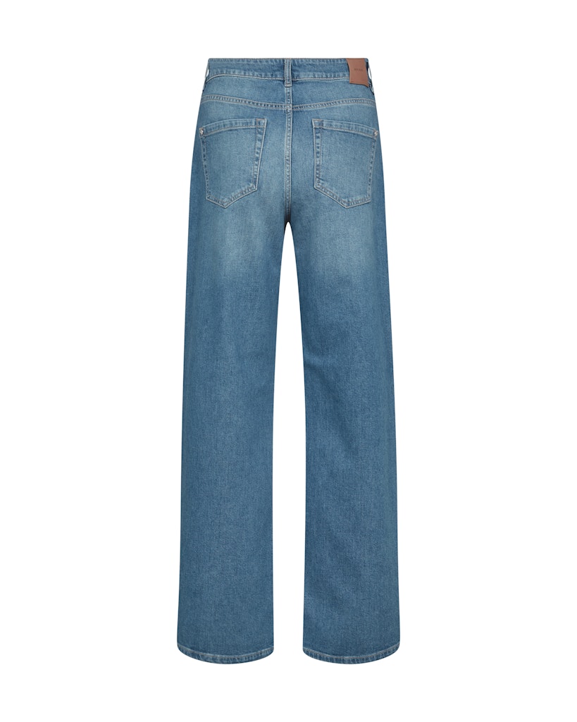 Jeans fra MOS MOSH i en klassisk og tidløs blå vask. Modellen har høj talje og brede ben, som giver et moderne og flatterende udtryk. Med længde 32 får du en lang jeans med et flot og elegant fald.