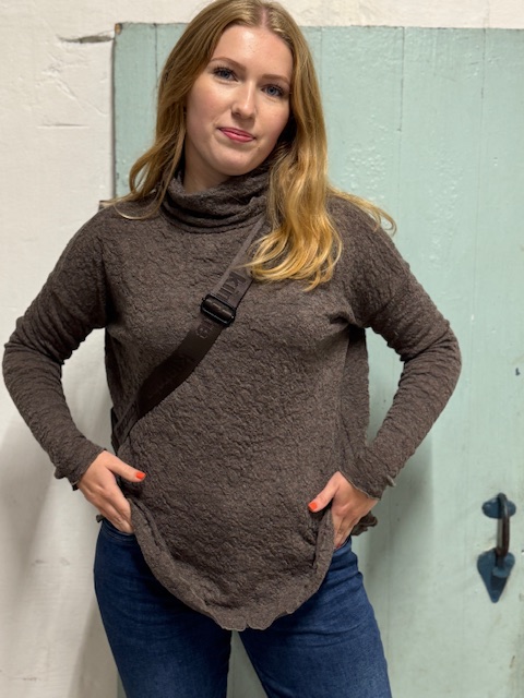 Skøn struktur på denne rullekrave sweater - merino bubble wool. Det er samme kvalitet, som den velkendte 100% merino uld, men med en mere let og bølget struktur, som er inspireret af natur. Denne bluse er loose i modellen. Den har en høj og løs rullekrave, så den er ikke stram om halsen. Den er lidt bred i modellen og har ekstra lange ærmer, som er dejligt på de kolde dage. Ja og der er faktisk lavet en åbning til din tommeltot, hvis du ønsker at bruge det. 4501 shirt wide w/large rollneck kommer kun i 3 størrelser, for en størrelse dækker over flere størrelse, fordi den er loose i modellen. En utrolig lækker og smart strik, som holder i mange år - både mht kvalitet og stil. Den kommer i flere farver.