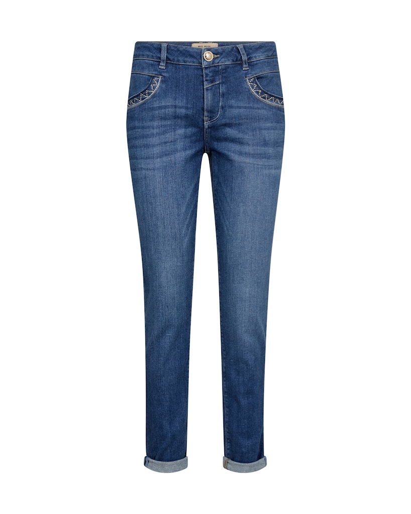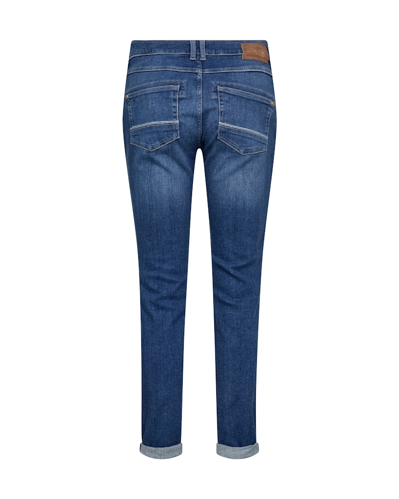 Naomi Jenny jeans fra MOS MOSH er en ægte klassiker og klar favorit. Modellen har et slankt snit med en flatterende pasform, kombineret med flere af brandets velkendte signaturdetaljer. Jeansene har mellemhøj talje og en opsmøget kant forneden, som nemt kan smøges ned igen for et mere klassisk udtryk.
